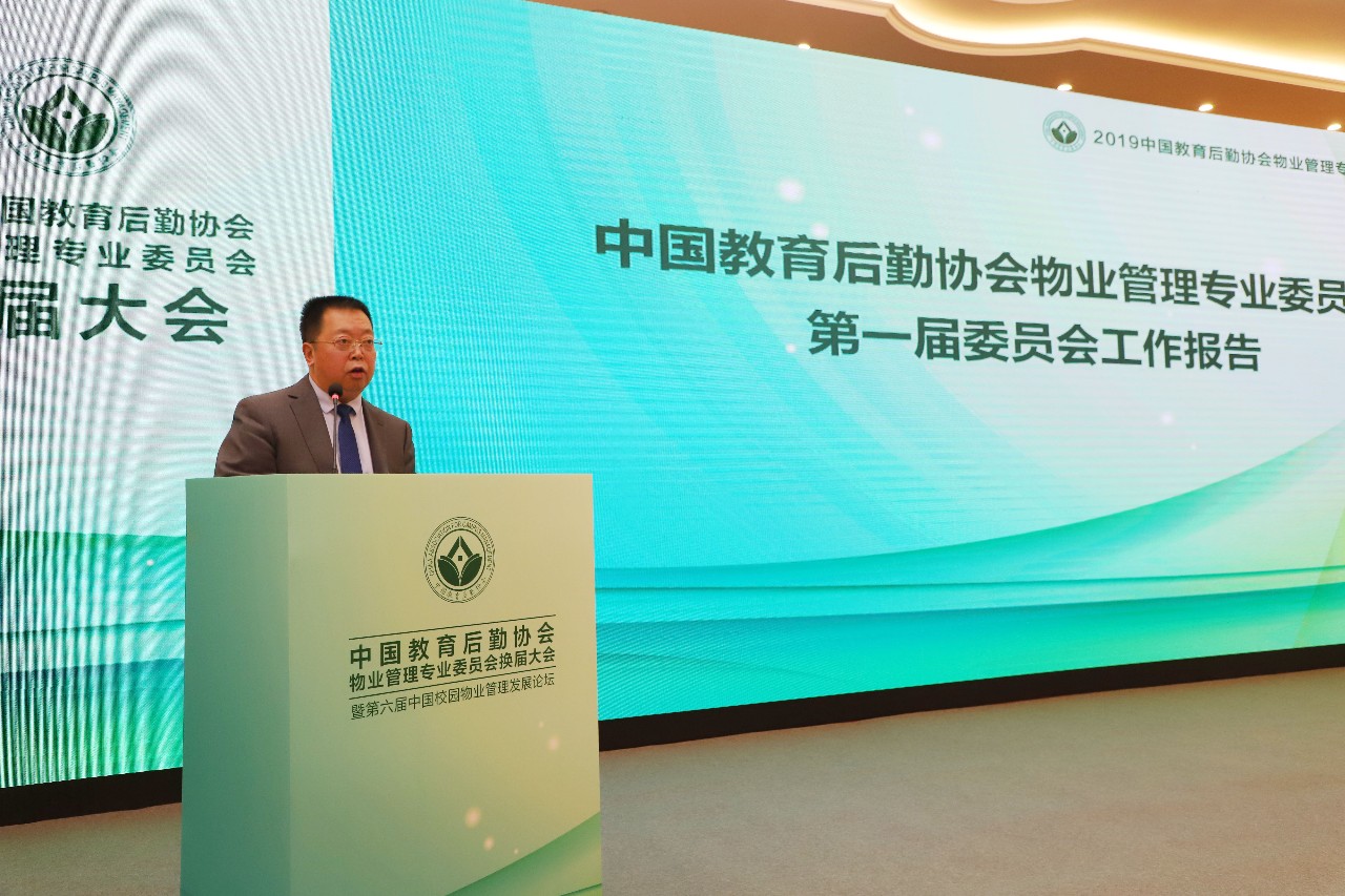 他对新一届物专会提出深切希望,希望新一届专委会与时俱进,再接再厉,以习近平新时代中国特色社会主义思想为指导,认真学习和深刻领会党的十九届四中全会关于推进国家治理体系和治理能力现代化的重大意义和总体要求,把四中全会精神贯彻落实到教育后勤行业组织的工作中。要充分认识到,社会组织管理是国家治理体系和治理能力的重要组成部分,中国教育后勤协会及其专委会作为全国性教育后勤行业组织,承担着规范行业秩序、反映行业诉求、提供行业服务、承接政府职能转移、维护行业稳定、促进行业健康发展的重要职责和使命。物专会要充分发挥校园物业管理组织体系的特色和优势,加强自身组织建设,积极推进组织管理体系和能力现代化。不断提高科学办会、民主办会、依法办会水平和管理服务能力;要确保物专会领导班子和工作人员遵纪守法、遵守章程、恪守组织的性质和宗旨、坚持用服务教育、服务行业、促进事业发展来凝聚委员、团结委员;反映委员诉求、维护委员利益、规范委员行为、汇集委员智慧、完善专委会管理制度、议事规则,健全专委会的决策机制、执行机制,加强专委会工作团队建设,完善担当作为的激励机制。希望新一届物专会认真总结经验,根据新形势,结合自身的情况和行业组织的职能要求,倾心谋划好自身业务领域的工作,积极搭建平台、增进交流、提供服务,多形式、多渠道开展丰富多彩的行业活动,引领行业改革和发展。结合自身业务特色,以创造性的思维、严谨务实的态度积极开展工作,加快开展校园行业标准规范研制工作,为校园物业服务市场开放与规范监管创造条件,提供依据,奠定基础;整合教育后勤系统内外的各类优质资源,搭建平台,探索打造校园物业服务管理开放、合作、互动、共赢的协同创新发展体系,引入校园物业服务新模式、新理念、新业态、新科技,特别要重视利用移动互联网技术,树立智慧校园物业管理理念思维,努力推动传统物业管理与现代技术相融合,实现校园物业服务管理模式的转型升级,为实现教育现代化,做出应有贡献。