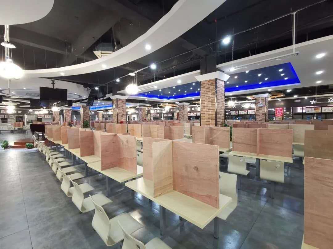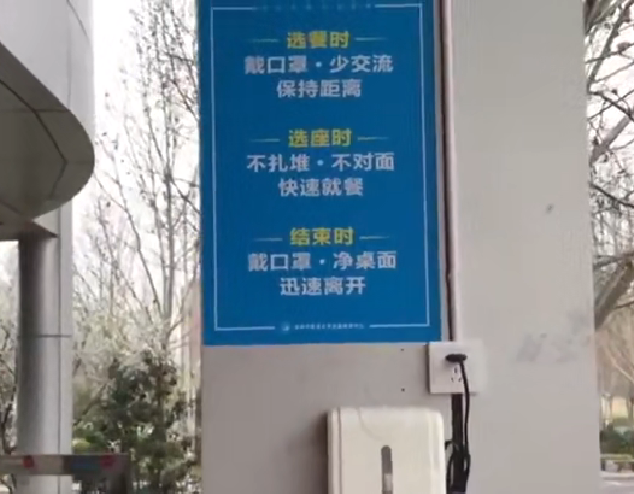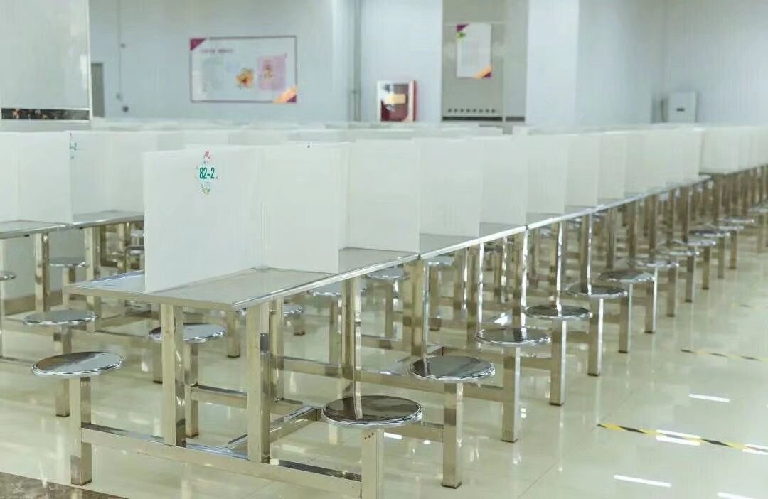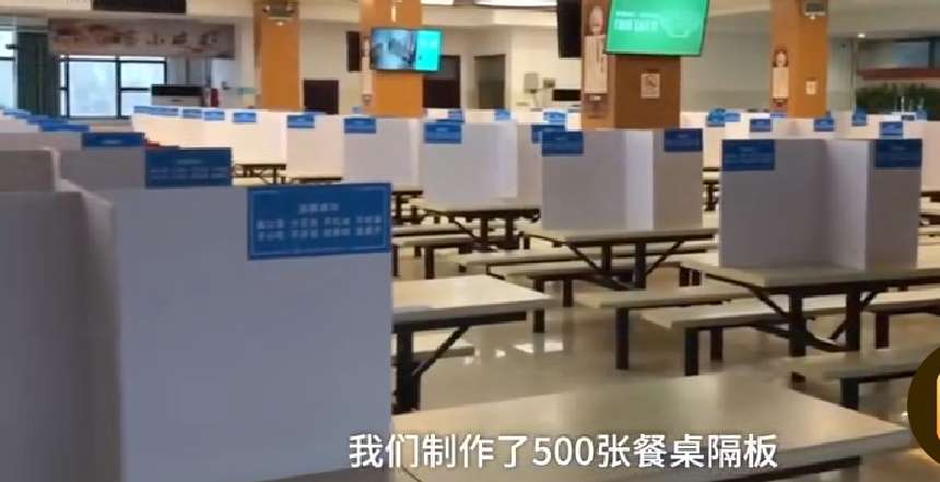 为防控疫情,河南中医药大学食堂餐桌上设置了隔板。后勤服务中心介绍,学校准备了500张隔板,以此增加就餐的座位。更是在食堂窗口设置一米的隔线,确保人员分流