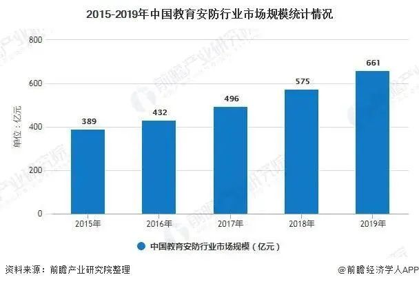 而根据前瞻产业研究院数据显示,我国教育安防市场规模在5年期间内稳定扩大,已达数百亿元。
