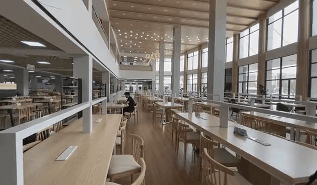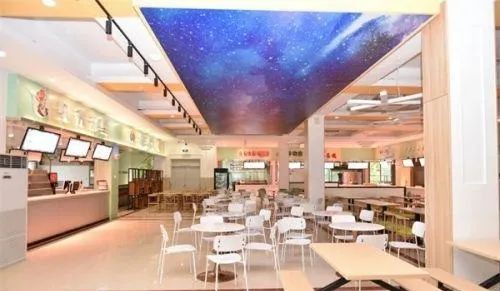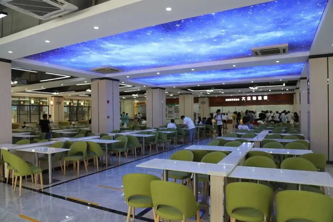 ·学校重新规划餐厅功能分区,加装了空调,更新餐桌椅、后厨设备,打造成集餐饮、学习和休闲于一体的高品质、多功能文化餐厅。