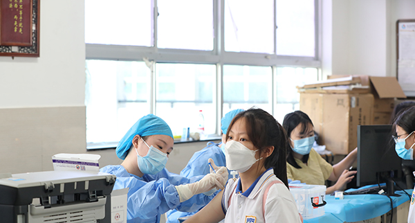 ·统一组织全体教职员工进行核酸检测,统一组织12岁以上学生进行疫苗接种;后勤部门采购足量的口罩、酒精、消毒液等防疫物资。