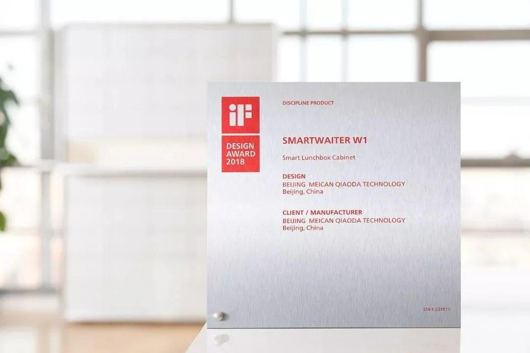 2018 年,美餐荣获 2017 年度中国团餐百强企业;2017 年度中国餐饮百强企业。美餐智能餐柜 SMARTWAITER W1 荣获 2018 年 iF 设计奖和红点奖。