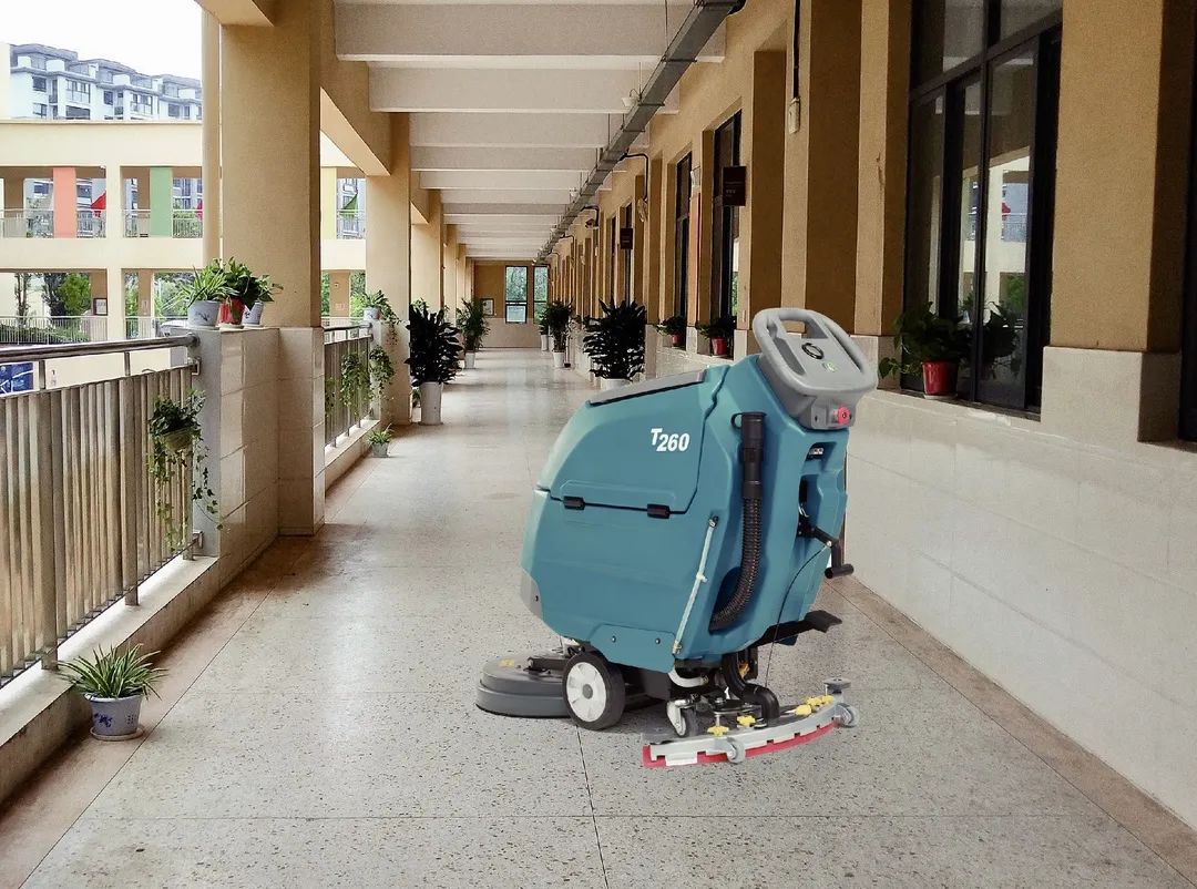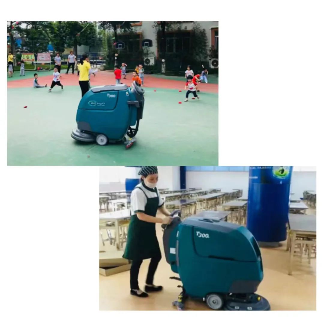 坦能联合爱玛客为教学楼过道、教室、图书馆、餐厅、小型室内体育馆等紧凑型地面提供小型手推式洗地机。