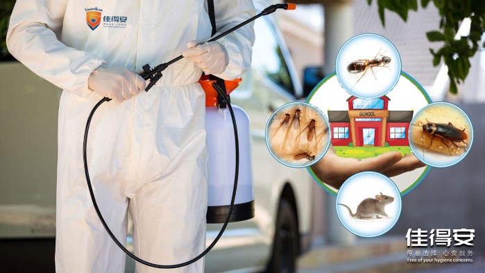 佳得安了解学校的各类虫害问题,可以定制专业的虫害防制方案,也会定期组织培训,提高大家的防虫意识。佳得安的综合虫害防制方案更加关注对虫害的预防,从源头解决虫害的问题;虫害治理过程中采用更加环保的生物药剂和物理方式,避免药品对人体的危害和对环境的污染。
