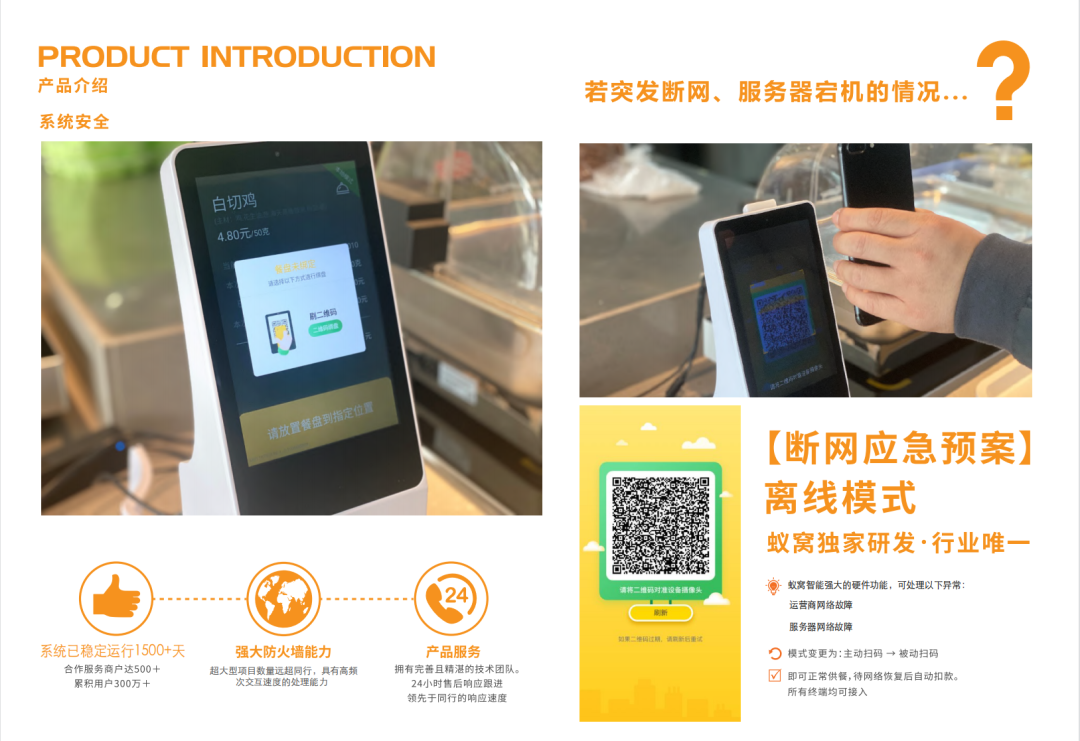 当网络异常情况或服务器处于崩溃状态,「蚁窝智能」用餐系统将自动切换为离线模式运行,避免因网络、供电等问题导致出现无法支付、无法取餐的情况出现,消费者能正常扫码绑盘取餐并正常消费。
