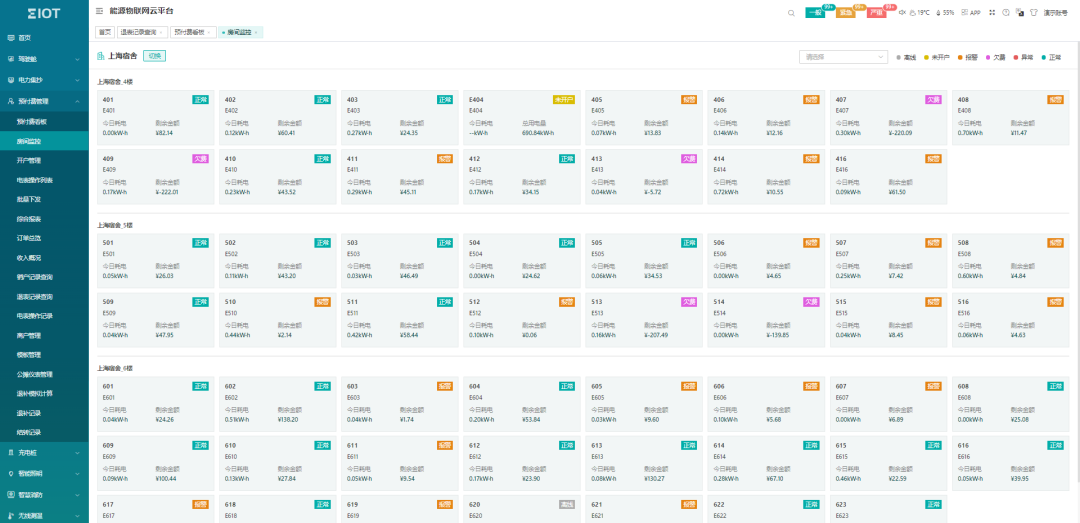 通过能源付费管理方式,培养用能群体和部门的节能意识。主要包含宿舍用电管理、商铺水电收费、空调用电管理、智能照明管理、特殊用能计费和充电桩管理几个场景应用。