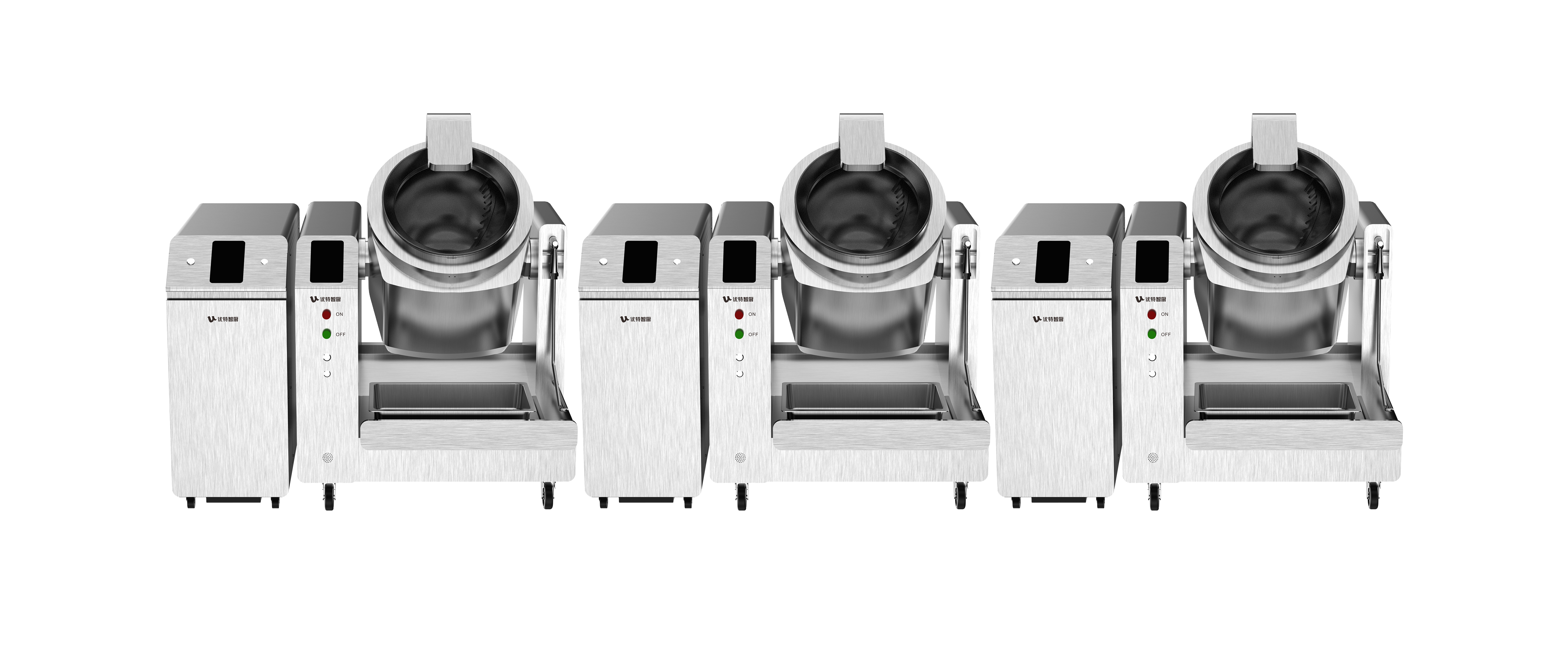 优特智厨专注菜品标准化,精研硬核技术,推出了商用智能滚筒烹饪系统,从翻炒、投调料、调火候、出菜到洗锅,均由智能电子菜谱驱动,高度实现了出品的标准化。滚筒系列有不同容量的型号配置,可满足多种场景需求。