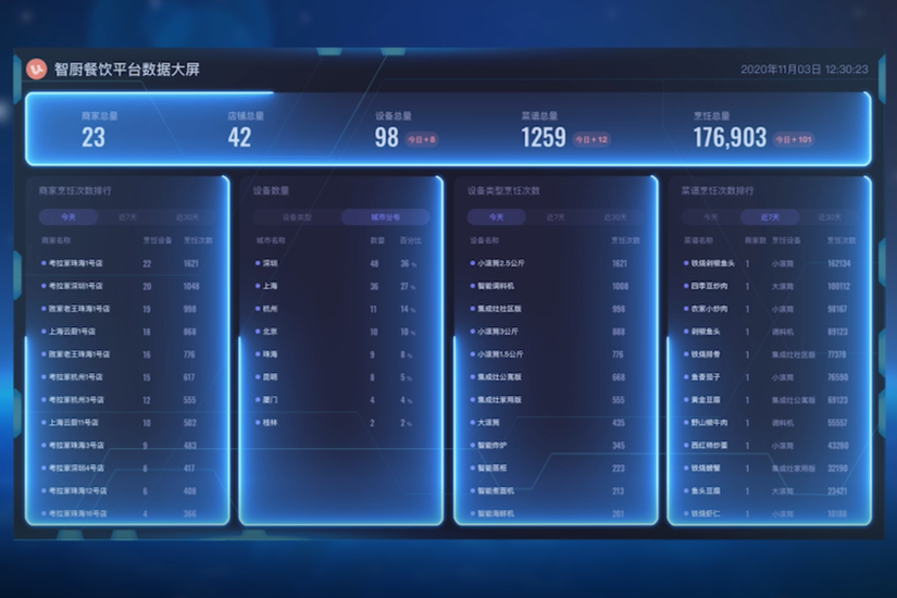 优特智厨配备智能软件系统,辅助食堂统筹运营管理。通过后台的消费订单汇总和数据精准分析,为采购计划及烹饪计划提供依据。食堂数据可随时查看,便于优化成本结构,提升利润率,运营状况尽在掌握。
