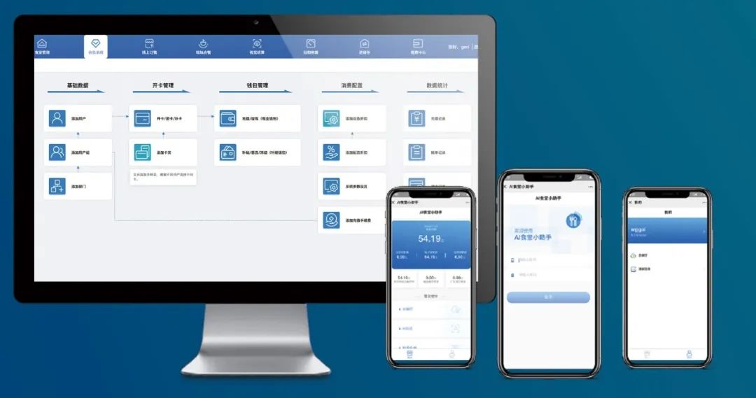 就餐者多种方式点餐,无需排队,更可随时查看营养分析报告,健康饮食;运营方多级运营、进销存管理,食安管理,提高运营效率。