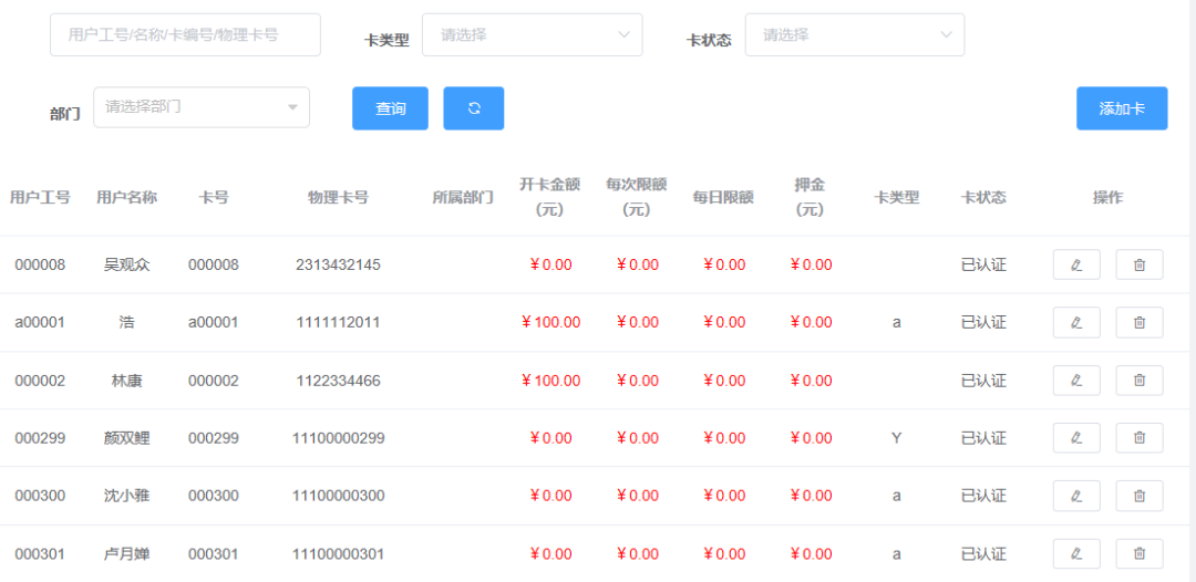 1、可通过用户工号、卡号、名称、部门等查询方式对用户一卡通账户进行现金的充值操作,以及进行餐补金额补贴操作。