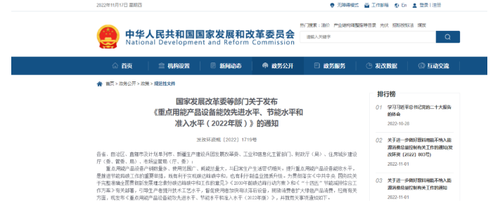 近日,国家发改委等部门发布《关于发布〈重点用能产品设备能效先进水平、节能水平和准入水平(2022年版)〉的通知,其中低环境温度空气源热泵(冷水)机组、热泵热水机(器)、风冷式热泵入选。提升重点用能产品设备能效水平,是推进节能降碳工作的重要举措,有利于实现碳达峰碳中和。
