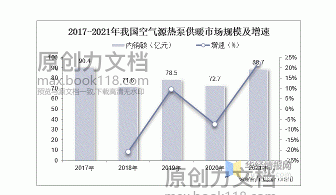 ▲2017-2021年中国空气源热泵供暖市场规模及增速