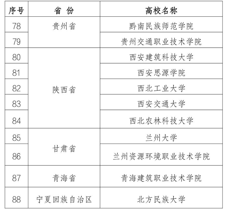 为贯彻落实《国家节水行动方案》,引领带动广大公共机构和全社会节约用水,根据《水利部办公厅、教育部办公厅、国家机关事务管理局办公室关于开展节水型高校典型案例遴选工作的通知》要求,由省级水行政主管部门、教育主管部门、机关事务管理部门联合组织申报和审核推荐,经水利部、教育部、国家机关事务管理局进行专家评审、现场复核、综合评议和公示,遴选出88家节水型高校典型案例,现将名单予以公布,典型案例概况可上全国节水办网站查询。