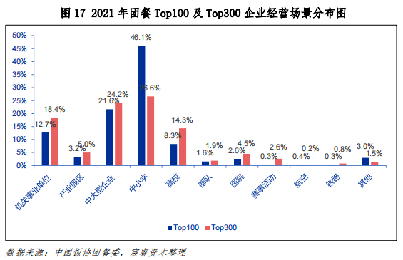 ▲2021年团餐Top100及Top300企业经营场景分布图