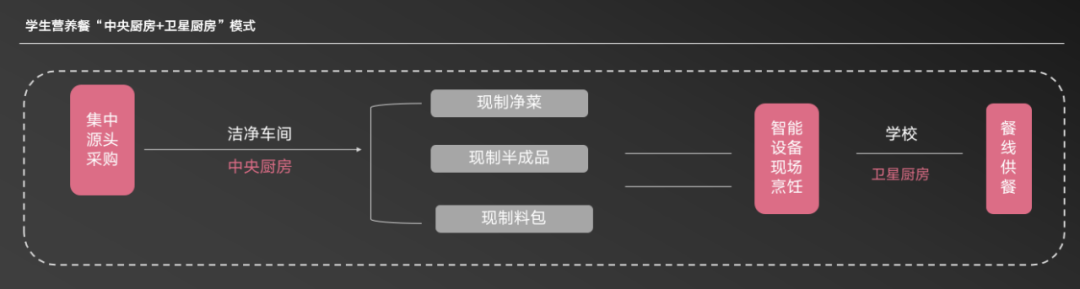 ▲学生营养餐“中央厨房+卫星厨房供餐模式