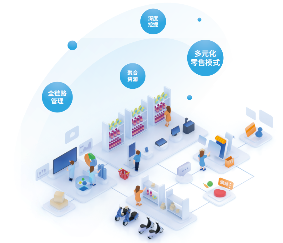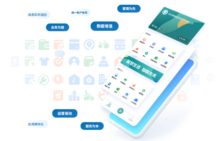 整合全场景信息化资源和现有服务应用,打造一站式管理、一站式服务模式。开放化平台建设,融合更多专业产品,和客户共创共赢,与友商共同发展;