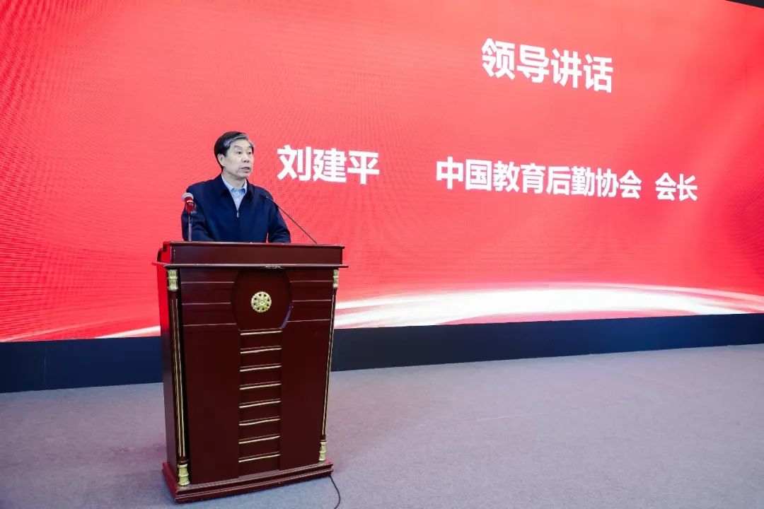 中国教育后勤协会会长刘建平发表讲话。他首先对全国安专会在服务政府、服务学校、服务企业等方面所做的工作表示肯定;对全国安专会领导班子、工作团队和全体委员单位的辛勤付出和努力表示感谢。对于教育后勤安全工作,刘会长也提出以下几点思考:
