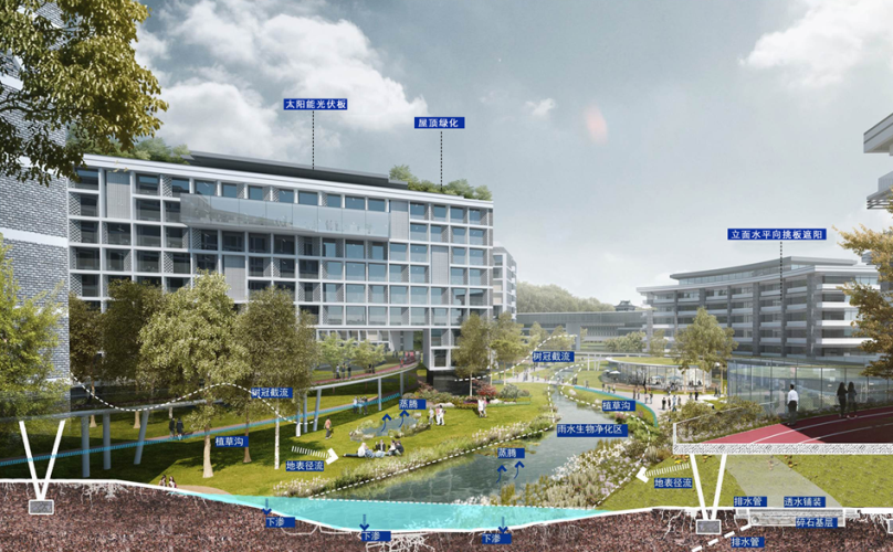 今年9月即将投入使用的南京大学苏州校区,总建筑面积约100万平方米,绿色建筑项目面积占比达100%。校区还充分利用山林、水系和风向,在建筑布局及单体设计中,通过采取下沉庭院、风廊、绿廊、外立面遮阳、屋顶绿化等节能措施,打造具有完善生态系统、宜居宜学的生态校园。