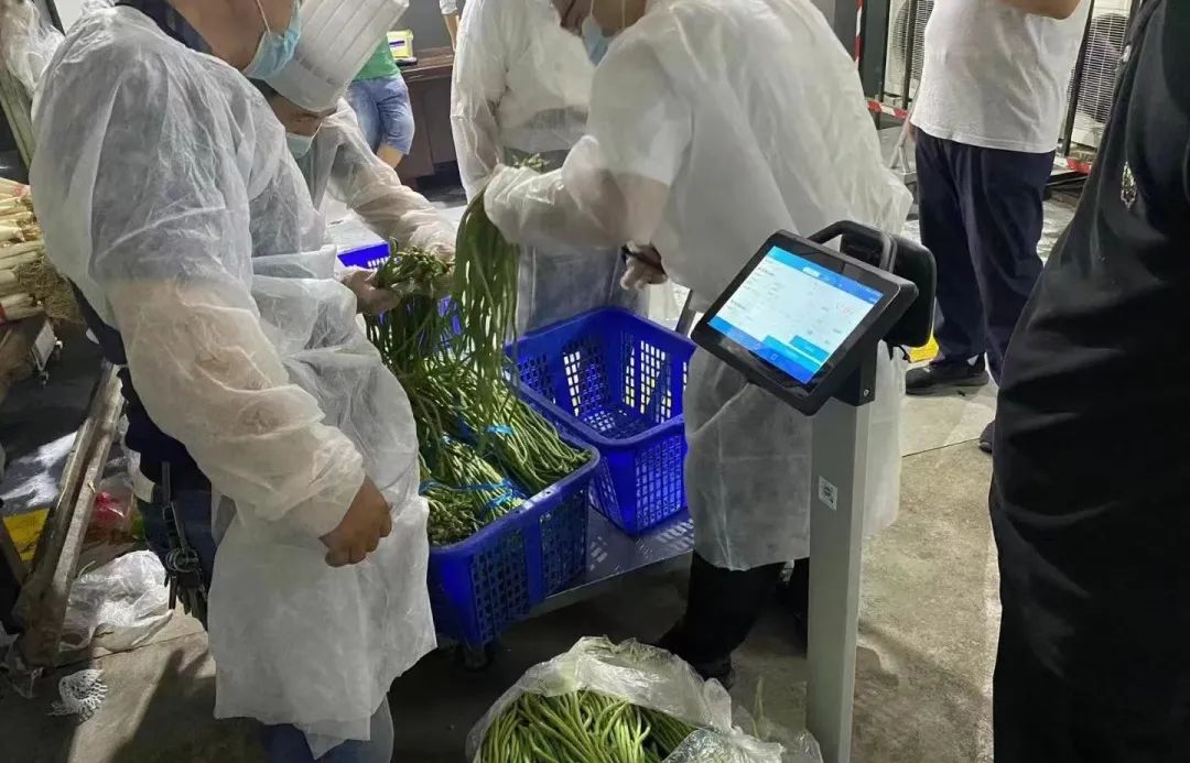 第二天早上,验收部门会按照单据,对供应商送达的食材进行验收和入库作业。验收按照开袋、入筐、核验品质、拍照、计量、保存等规范的作业流程和动作,将数据生成并上传到云服务器,这样,完成一个单品食材的验收,实现品名、重量、照片、时间四位一体的绑定。