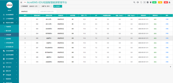 水质监测:实时监测校内各进水点、用水末端水质情况,保障饮用水安全,预防水质问题对校园师生的健康造成影响。