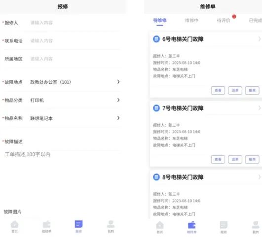 学校内的师生员工可以通过网上报修功能,方便地提出设备维护和修理的请求,减少沟通时间,快速响应问题。支持扫码或手动填写报修信息,支持派单、接单、反馈、评价等流程,支持抢单功能。