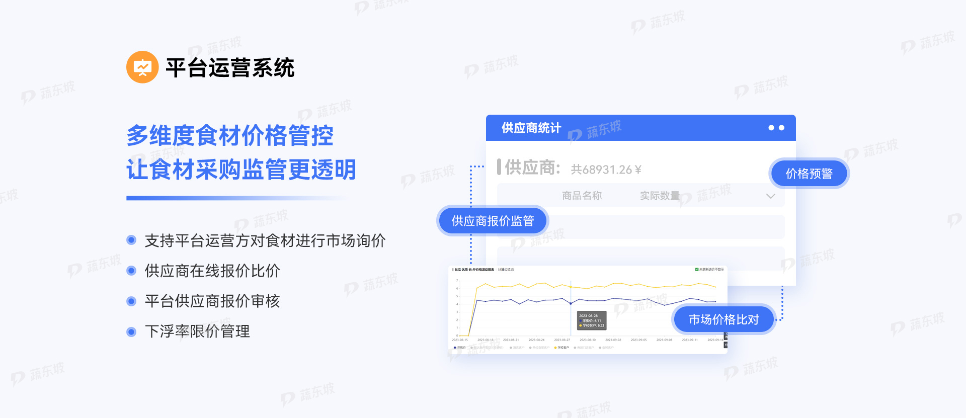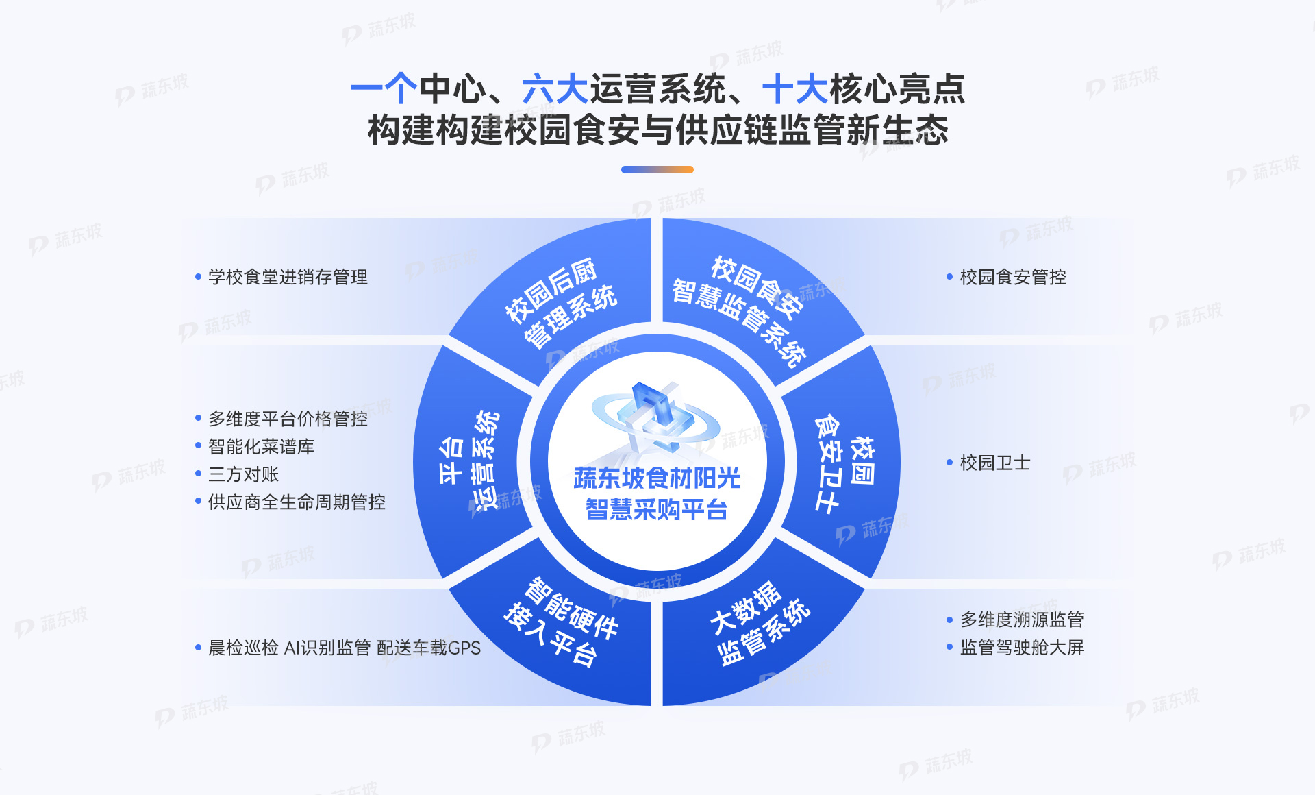 蔬东坡食材阳光智慧采购平台通过六大系统协同运作和十大核心亮点全面覆盖,构建校园食安与供应链监管新生态。