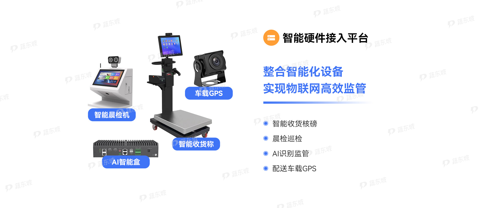 智能硬件接入平台是食安与供应链管理的“神经末梢”。整合晨检巡检、AI识别监管、配送车载GPS等智能化设备,实现物联网高效监管。