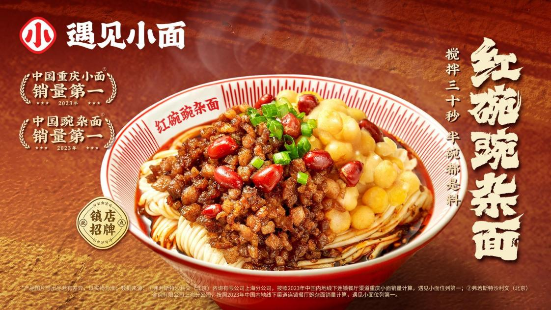 据沙利文权威认证:重庆小面、红碗豌杂面、金碗酸辣粉均荣膺2023年“中国销量第一”的市场地位认定。