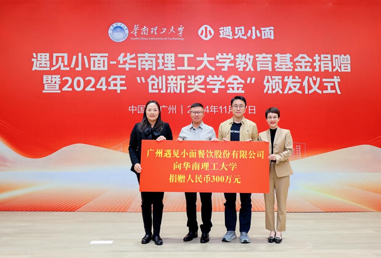 2024 年,三位创始人以校友企业身份向华南理工大学捐赠 300 万元人民币,用于设立 “遇见小面—华南理工大学教育基金”。这一举措既是对母校的感恩回馈,也切实支持了在校学生的创新创业项目和校园教育设施建设。