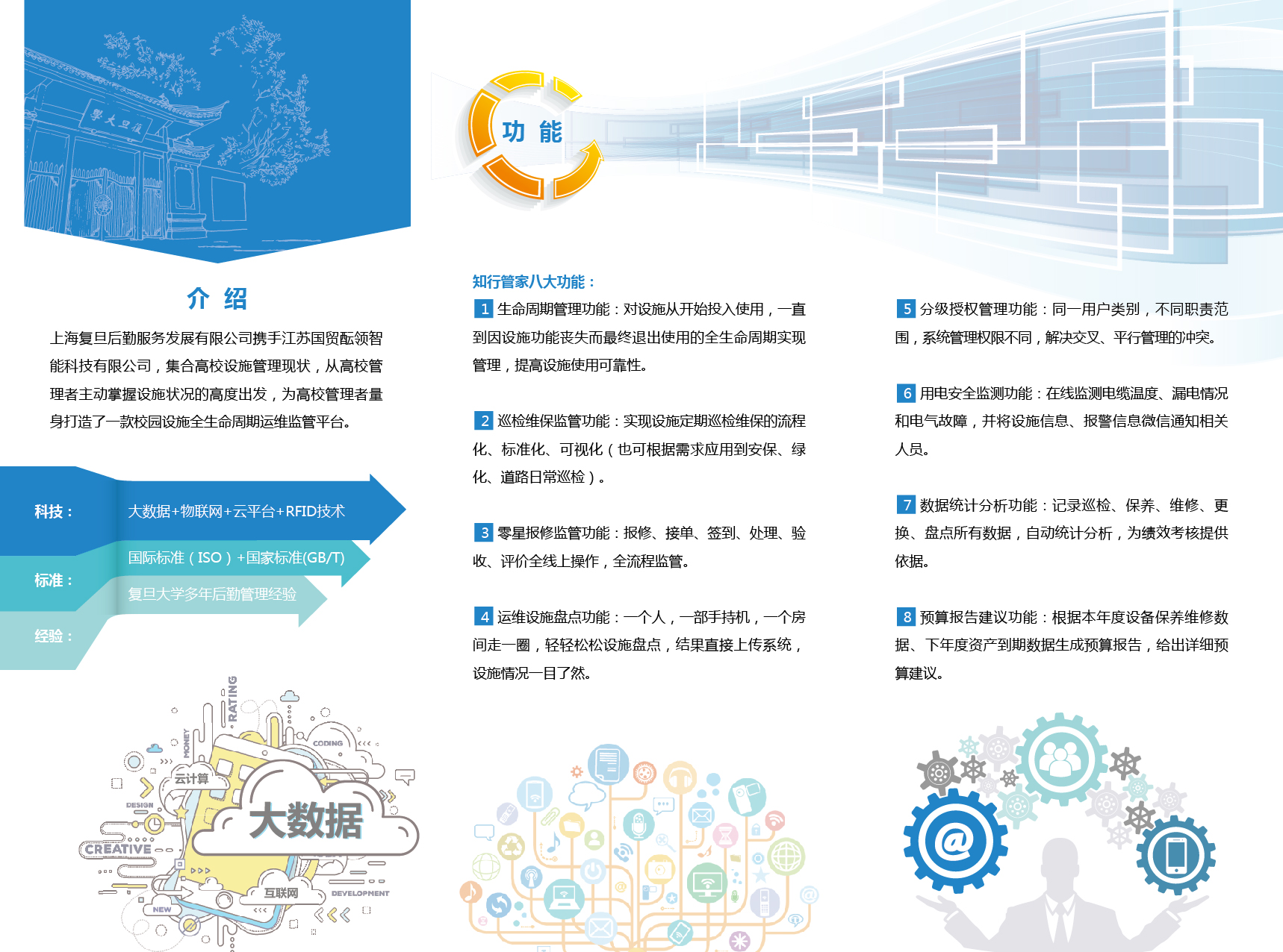 知行管家是集设备全生命周期运维管理、员工标准化工作指导监管、校园用电安全在线监测于一体的综合性智能化信息化后勤物业管理系统,具有生命周期管理、巡检维保监管、微信报修维修、设施设备盘点、分级授权管理、用电安全监测、数据统计分析、预算报告建议等功能,为高校的后勤物业管理提供全方位的支持与辅助。