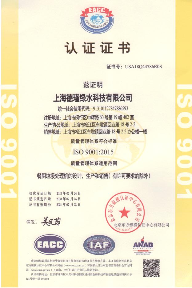 公司严格遵循ISO9001质量管理体系,生产的“白鸥”消灭型餐厨垃圾生物处理机,经上海市质量监督检验技术研究院检测,产品性能优于《有机垃圾生物处理机》CJ/T227-2018行业标准,垃圾减重率超过99.3%。凭借多项国家专利技术,目前已通过多家国家级权威检测机构检测认证: