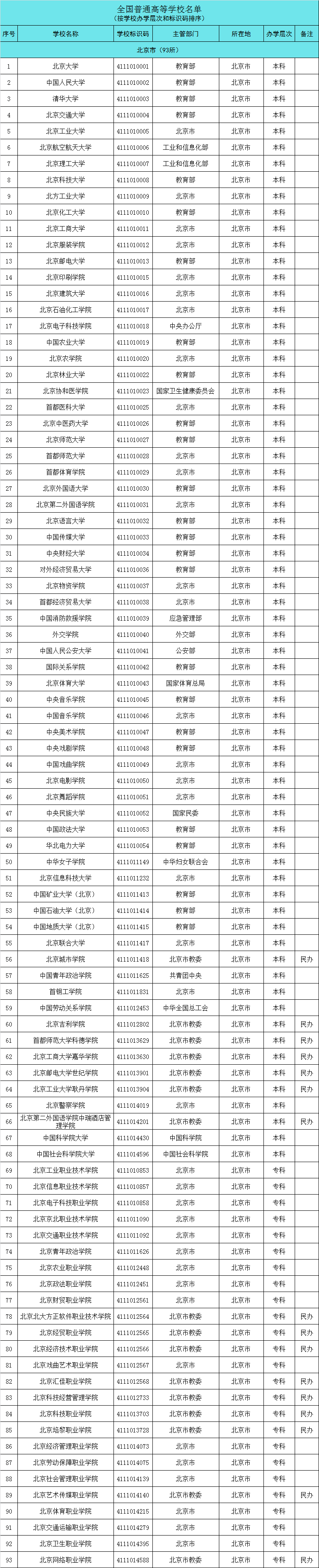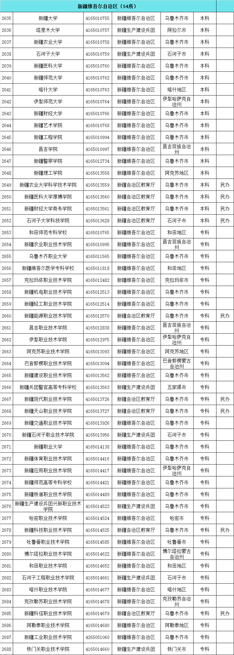 教育部公布了2019年全国高校名单。截至2019年6月15日,全国高等学校共计2956所,其中:普通高等学校2688所(含独立学院257所),成人高等学校268所。